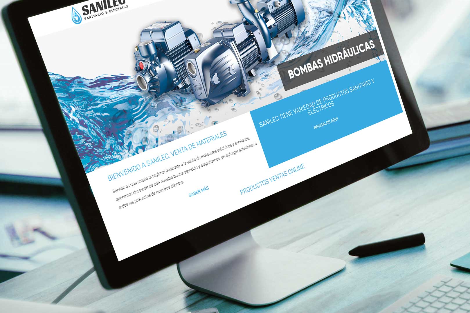 Desarrollamos un sitio web para empresa de climatización, acompañado de un cartel publicitario para Sanilec. Esta solución integral unificó su presencia online y física bajo una identidad visual coherente.